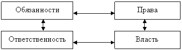 Данная схема начинает действовать, когда рабочее место обеспечено средствами и не должно быть средств не связанных с какой-либо функцией. Обязанности и права должны быть взаимно уравновешены. Ответственность должна обеспечиваться соответствующей властью и наоборот. Разбалансированность ведет к конфликтам «по вертикали».