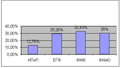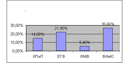 В дальнейшем нами были подсчитаны процентные соотношения по отдельным категориям среди анализируемых факультетов. Проценты (Y) по категориям находились по следующей формуле: