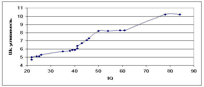 Рис. 3.2.2. Корреляционная связь между уровнем интеллекта и уровнем школьной успеваемости учащихся.