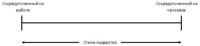 Рэнсис Лайкерт и его коллеги в Мичиганском университете разработали альтернативную систему, сравнивая группы с высокой производительностью труда и группы с низкой производительностью в различных организациях. Они считали, что разницу в производительности может объяснить стиль лидерства. Аналогично континууму по теориям “Х” и “Y” Макгрегора, руководители групп с высокой и низкой производительностью классифицировались по континууму, находящемуся в пределах от одной крайности - сосредоточенные на работе (теория “Х”), до другой - сосредоточенные на человеке (теория “Y”). Этот континуум представлен на Рис. 1 [4].