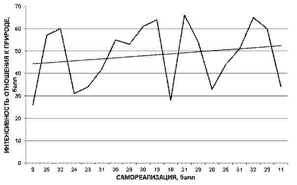 График зависимости интенсивности субъективного отношения к природе и самореализации представлен на рис.1.