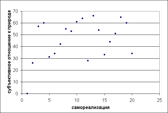 Рис.2. Диаграмма рассеивания зависимости интенсивности субъективного отношения к природе и самореализации