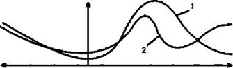 Рис. 3.1. Схема изменений активации симпатического (1) и парасимпатического (2) отделов вегетативной нервной системы при различных эмоциональных состояниях