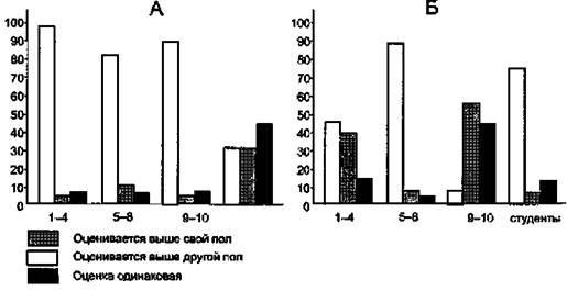 А - оценки лицами женского пола; Б - оценки лицами мужского пола