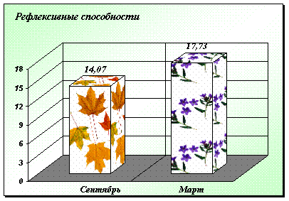Следует отметить, что до эксперимента уровень развития рефлексивных способностей был средним (14,07), после эксперимента отмечается высокий уровень (17,73).