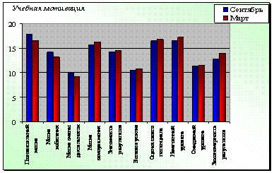 Значимых различий между средними значениями двух групп по t-критерию Стьюдента не обнаружено. Наблюдается тенденция к повышению уровня различных компонентов мотивации (см. Рис.9).