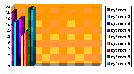 Метод Амтхауэра направлен на выявление преобладающих способностей человека. Для этого я проделала работу с девятью субтестами, ориентированными на определение разных способностей. В итоге, по каждому субтесту были получены определенные значения. По схеме обработки Амтхауэра нужно занести эти значения в гистограмму.