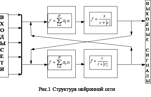 Сеть состоит из нейронов, соединенных синапсами через сумматоры по следующей схеме: